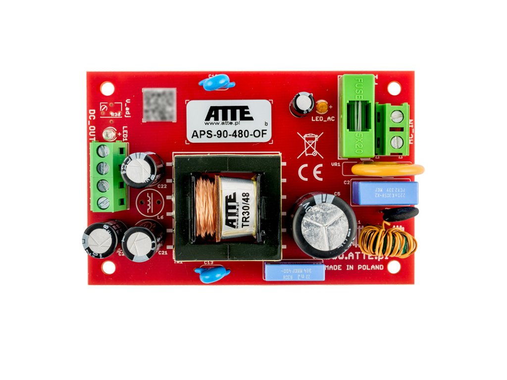 Sieťový napájací zdroj APS-90-480-OF je garanciou stabilného jednosmerného napätia pre náročné elektronické zariadenia – kamery CCTV, rekordéry atď. Vďaka integrácii prepätí a skratových ochrán je predurčený na prácu najmä v systémoch dohľadovania vyžadujúcich vysokú spoľahlivosť napájania. Obvod zariadenia je vysoko účinný impulzný menič poskytujúci izoláciu medzi sieťou 230 VAC a napájaným zariadením.