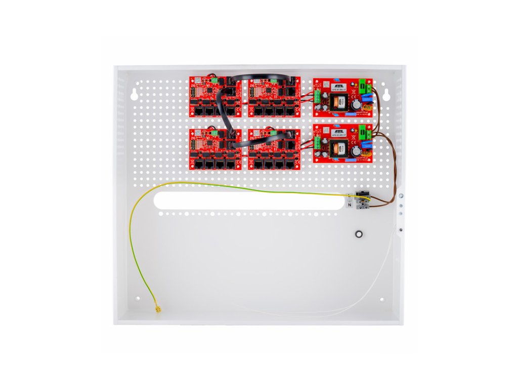 Všetky komponenty sú uzavreté v interiérovej skrinke série ABOX, ktorá poskytuje estetickú zabudovanú inštaláciu monitorovacích zariadení a konektory káblov v interiéri budov. Skrinka je vyrobená z oceľového plechu, lakovaného práškovou farbou na polomatný, biely odtieň. Vnútri skrinky je miesto pre video rekordér NVR s maximálnymi rozmermi 390x390x60mm.