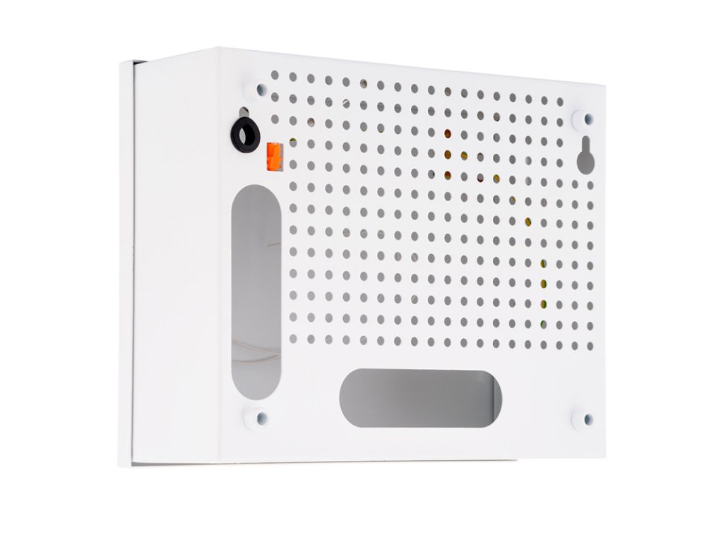 Všetky komponenty sú uzavreté vo vnútornej skrinke série ABOX, ktorá poskytuje estetické zabudovanie monitorovacích zariadení a ukončenie kabeláže vo vnútri budov. Skrinka je vyrobená z oceľového plechu, práškovo lakovaná na polomatnú bielu farbu. V skrinke je miesto na akumulátor 7 Ah.