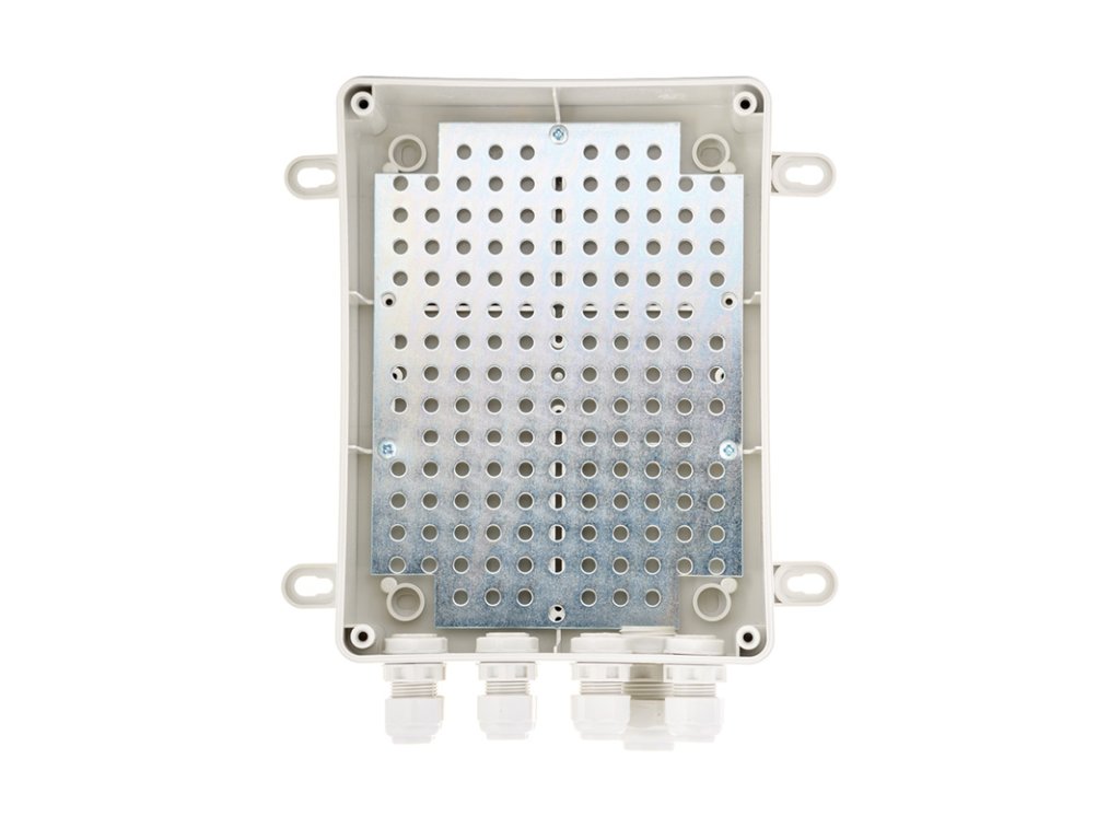 | Konštrukcia krytu | Materiál bezhalogénový, odolný voči UV žiareniu; namontovaná montážna doska s otvormi systémovými 4,8 mm v rastri 10,8 mm; nainštalované priechodky 6 x M16, 1 x M20 |