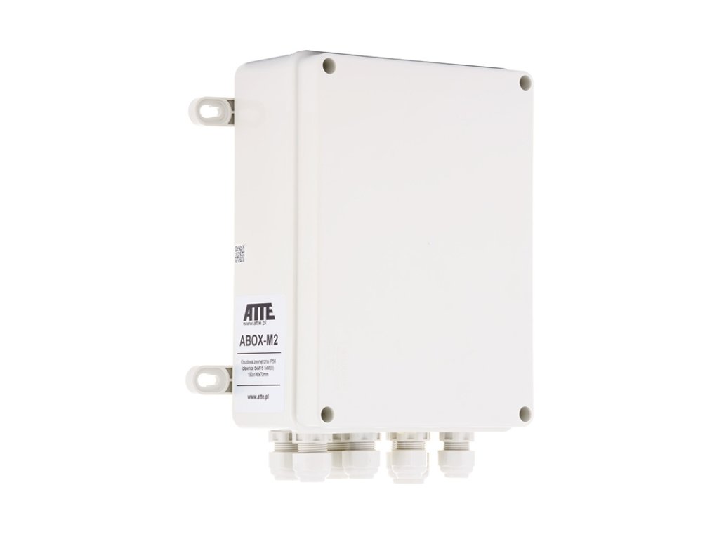 Všetky komponenty sú uzavreté vo vnútornom kryte série ABOX, ktorý zabezpečuje estetické zabudovanie monitorovacích zariadení a ukončení kabeláže vnútri budov. Kryt je vyrobený z materiálu bezhalogénového, odolného voči UV žiareniu. V balení 4 držiaky umožňujúce montáž krytu bez narušenia stupňa ochrany IP56.