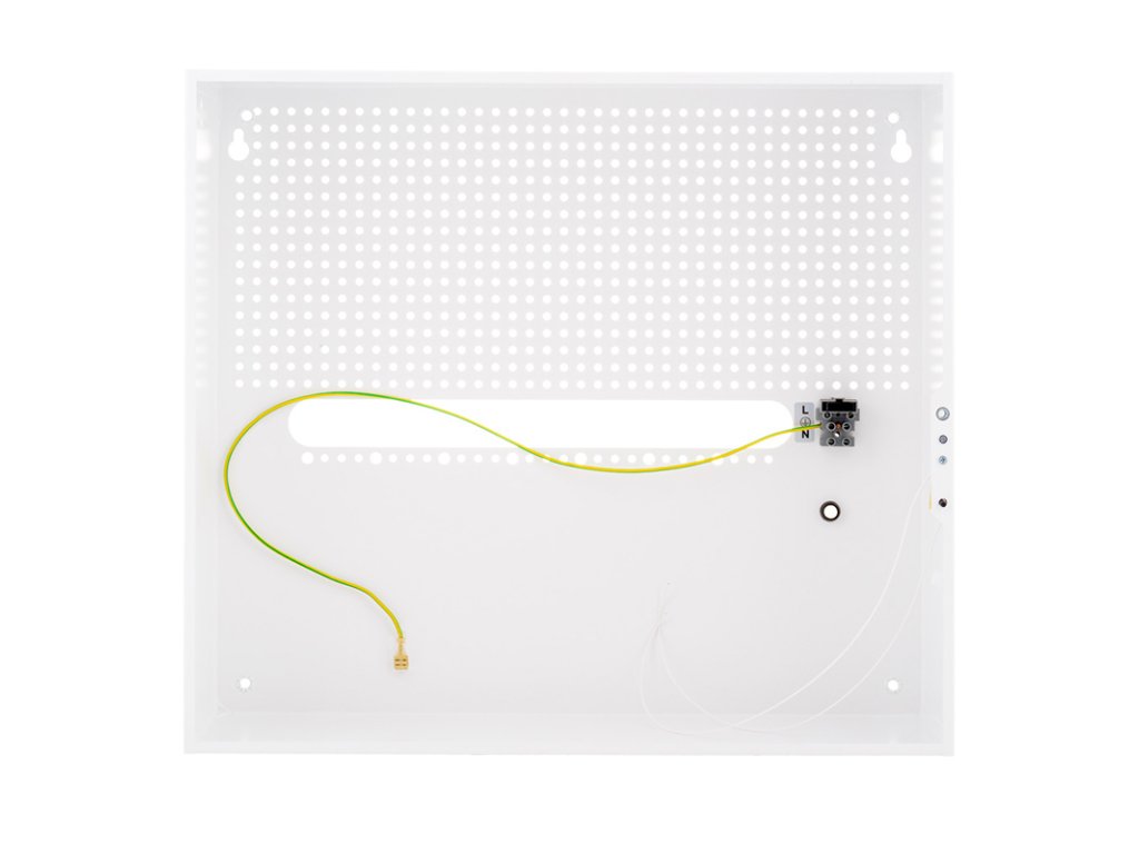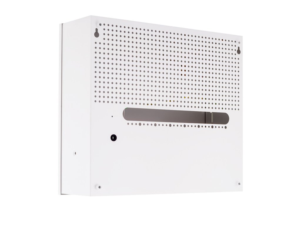 Všetky komponenty sú uzavreté v vnútornej skriňovej sérii ABOX, ktorá zaisťuje estetickú inštaláciu monitorovacích zariadení a ukončenie kabeláže vo vnútri budov. Skriňa je vyrobená z oceľového plechu, práškovo lakovaného na polomatnú bielu farbu. Vo skrini je miesto pre video záznamník NVR s maximálnymi rozmermi 390x390x60mm.