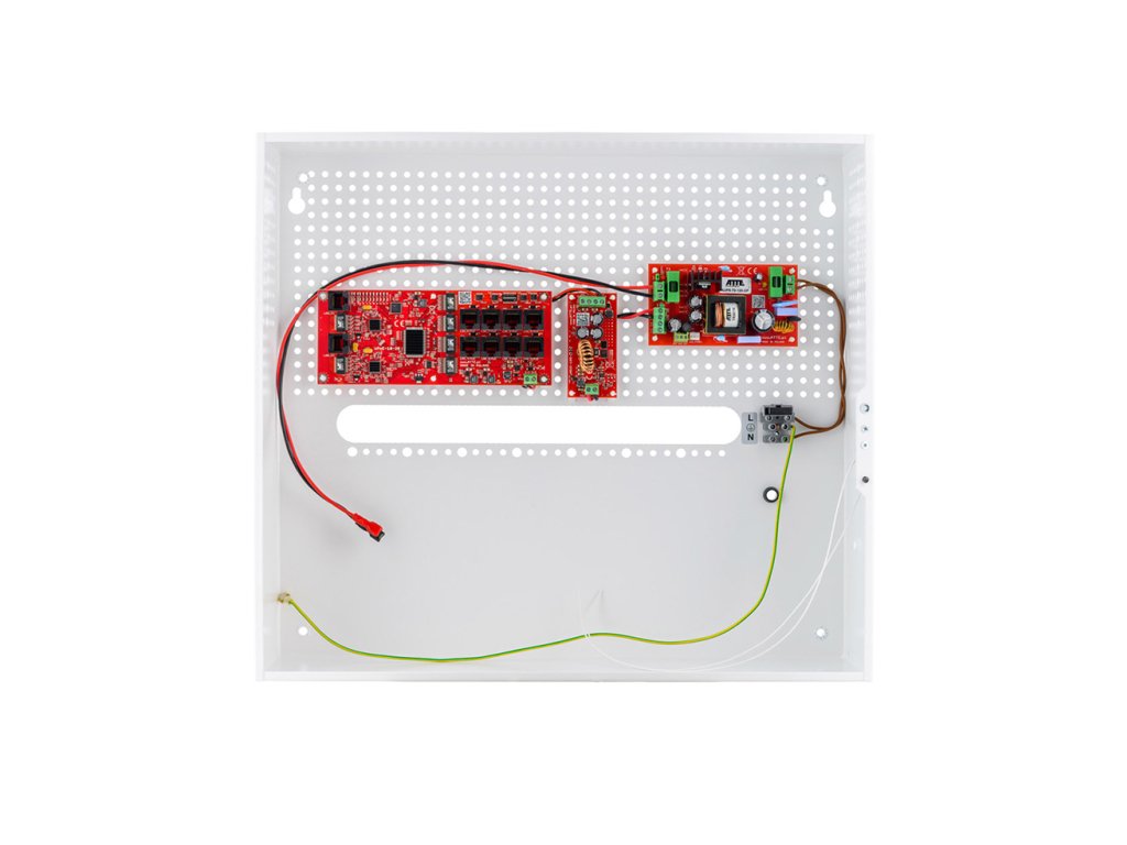 IPUPS?8?20?H je súpravou určenou na vyrovnávacie napájanie IP kamier priemyselného monitoringu - maximálne 8 IP kamier. Je to pohodlné riešenie problému s vyrovnávacím napájaním kamier monitoringu, určené tiež na spoluprácu s inými sieťovými zariadeniami napájanými v štandarde PoE 802.3at/af a PoE PASÍVNE. Táto súprava je obzvlášť odporúčaná pre systémy vyžadujúce väčšiu sieťovú priepustnosť, ako je napríklad monitoring CCTV 4K Ultra HD. Elektronická ochrana výstupov PoE zaručuje kontinuitu chodu celého systému počas skratu alebo preťaženia jednotlivých vetiev napájania a potom automatické obnovenie napätia po odstránení poruchy.
