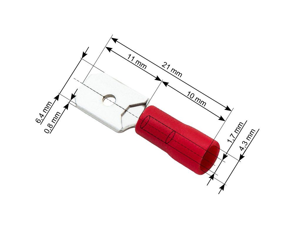 Izolovaný plochý konektor samec 6,3 mm červený je praktický elektroinštalačný prvok určený na rýchle, spoľahlivé a bezpečné spojenie vodičov. Vďaka plochému tvaru a štandardnému rozmeru 6,3 mm je vhodný pre široké spektrum použitia v aute, dielni aj pri bežných elektro opravách.