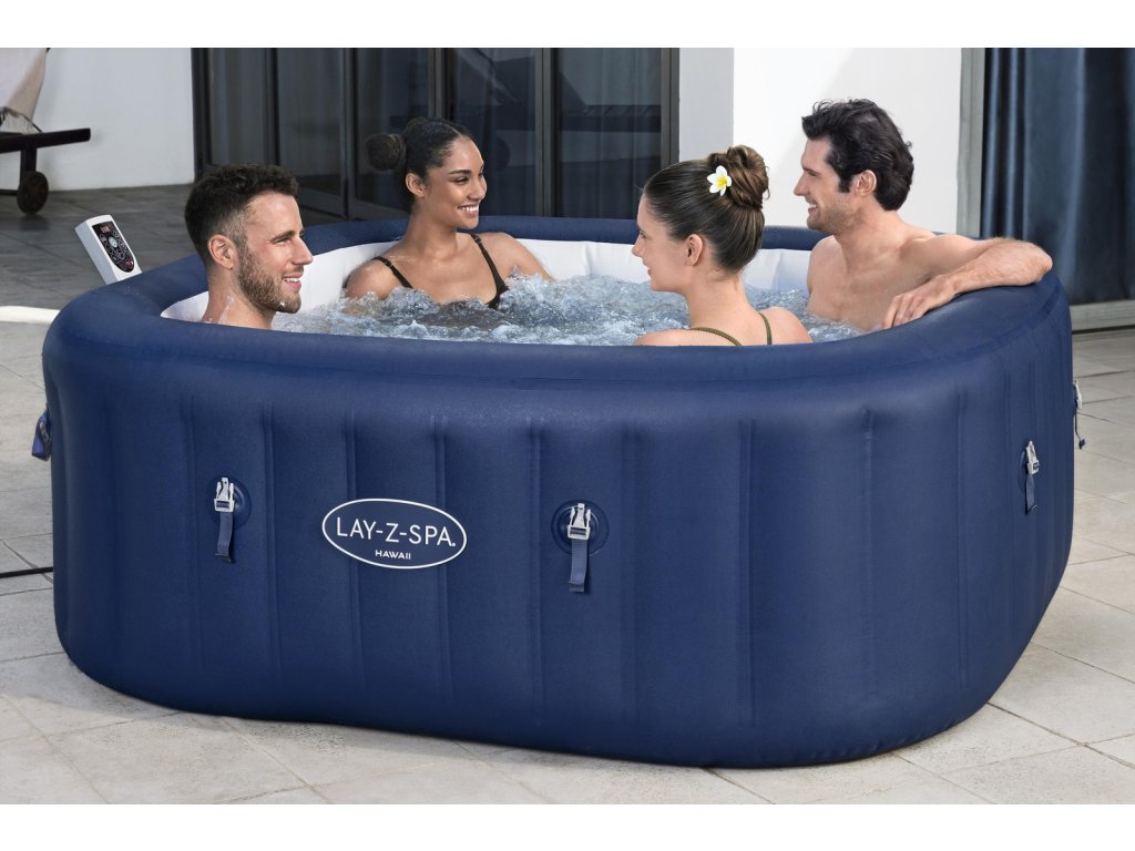 Jacuzzi Lay-Z-Spa Hawaii AirJet je ideálne riešenie do záhrady, určené pre 4-6 osôb. Vďaka technológii AirJet™ ponúka výnimočné relaxačné zážitky. Rozmery po nafúknutí sú 180 cm x 180 cm x 71 cm, s vnútornými rozmermi 130 cm x 130 cm, čo zaručuje pohodlné podmienky na relax. Vstavaný systém ohrievania umožňuje rýchle zvýšenie teploty vody a maximálna teplota je 40°C, čo zaručuje pohodlie používania počas celého obdobia. Vďaka odolnému materiálu a stabilnej konštrukcii jacuzzi poskytuje dlhodobé využitie.