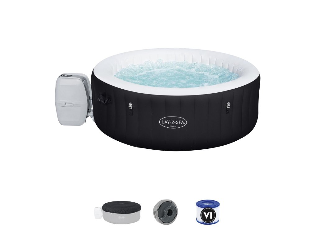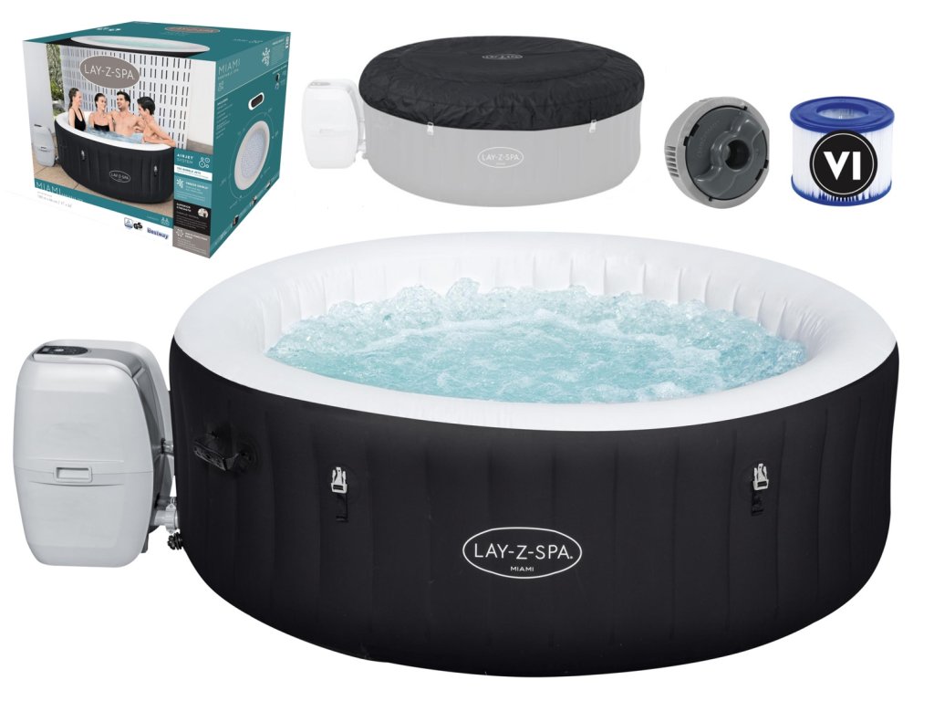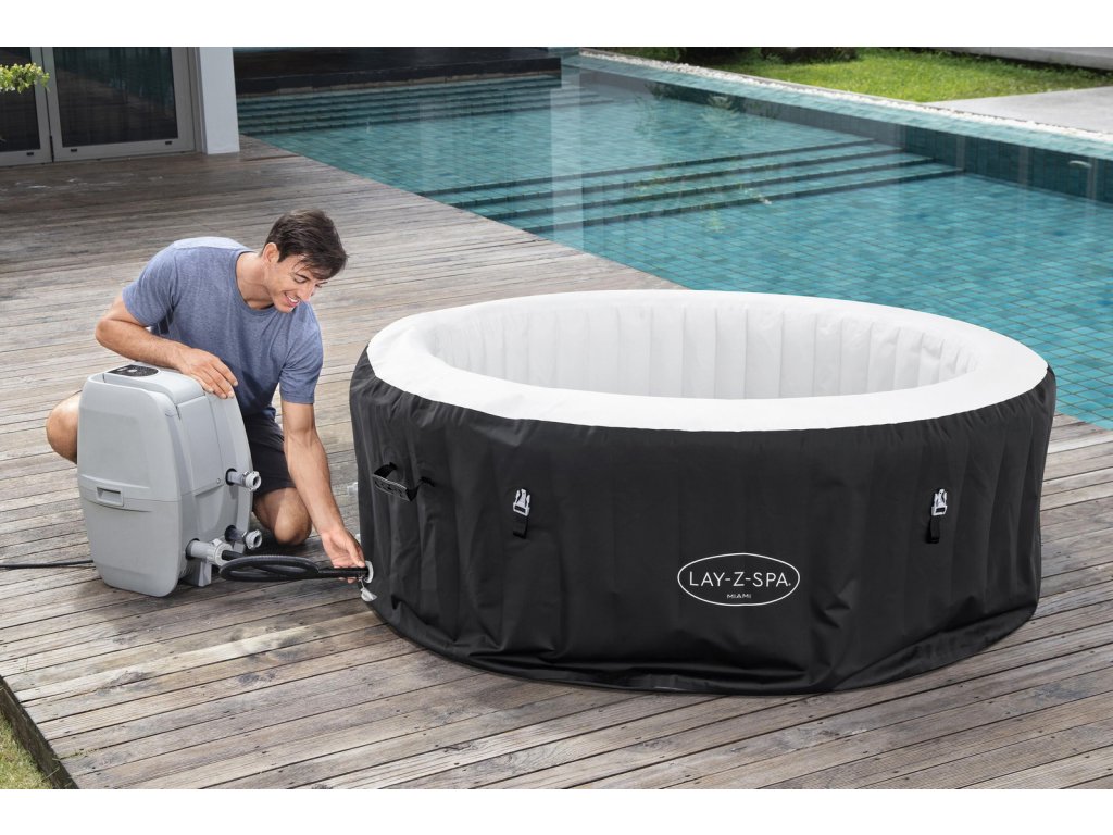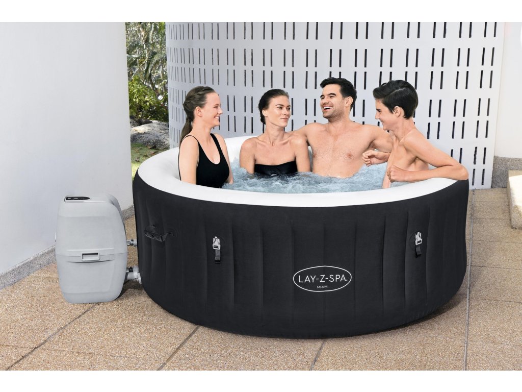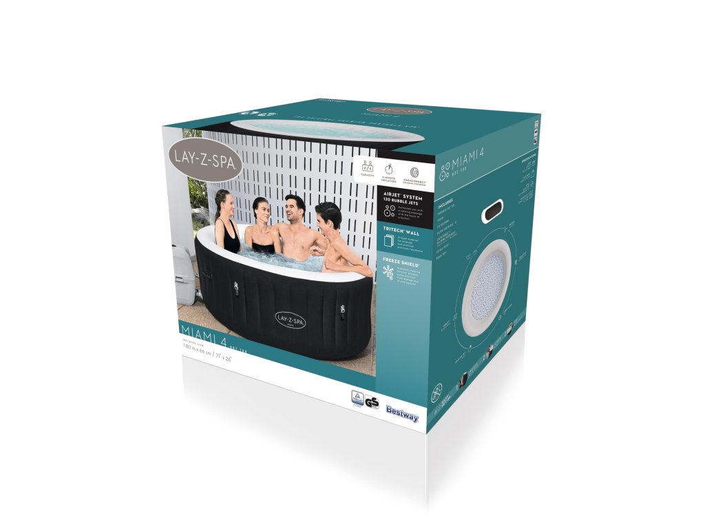 Jacuzzi Lay-Z-Spa Miami AirJet je vynikajúcim riešením pre 2–4 dospelé osoby, ktoré hľadajú pohodlné miesto na relax. Rozmery jacuzzi po nafúknutí sú 1,80 m x 66 cm a vnútorná veľkosť je 1,32 m. Vďaka technológii AirJet™ a systému bublinkovej masáže jacuzzi ponúka výnimočný relax. Maximálna teplota ohrevu vody je 40 ?, čo zaisťuje komfort po celý rok. Navyše systém Freeze Shield™ zabraňuje zamŕzaniu vody, čo zaisťuje dlhodobú použiteľnosť.
