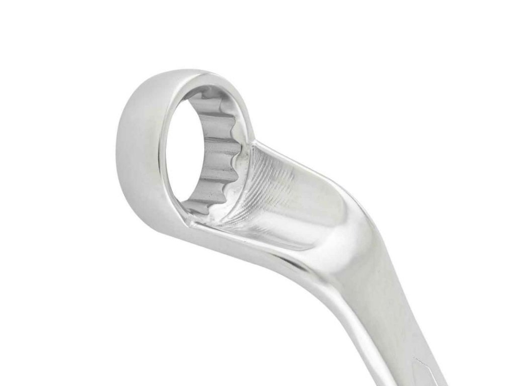 Obojstranný očkový kľúč ohnutý 75° o rozmeroch 19x22 mm je spoľahlivý ručný nástroj, vytvorený na prácu v obmedzených priestoroch a pri ťažko dostupných závitových spojoch. Vybavený 12-hranným profilom a uhlom ohnutia 75° na oboch koncoch, kľúč zaisťuje vysoký komfort práce a umožňuje jednoduchú manipuláciu aj na miestach, kde bežné kľúče zlyhávajú.