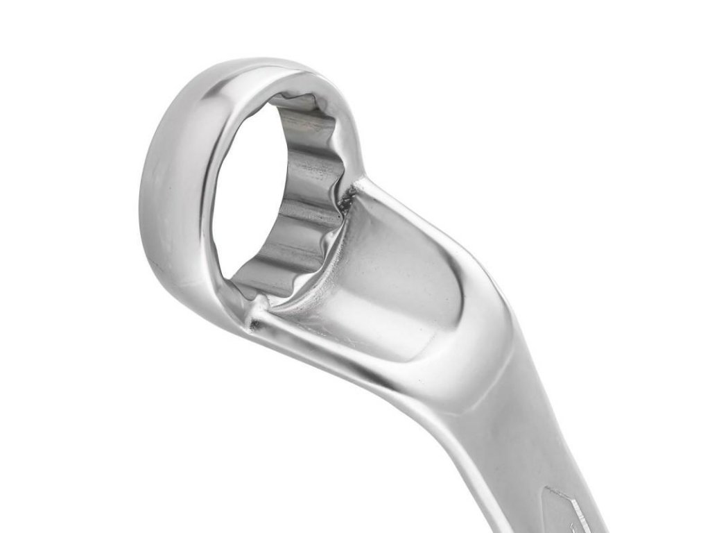 Konštrukcia s odsadenými očkami zlepšuje dostupnosť a zvyšuje silu páky, čo je kľúčové pri uťahovaní alebo povoľovaní silne zaťažených skrutiek. Vďaka vyhotoveniu z chróm-vanádiovej ocele (CrV) metódou za studena, je nástroj mimoriadne trvácny, odolný voči deformáciám a oderom.