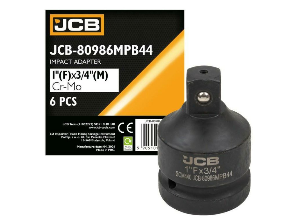 JCB Rázový adaptér ZOSILNENÁ oceľ SCM440 Cr-Mo 1"(F) x 3/4"(M) ŠTVOREC