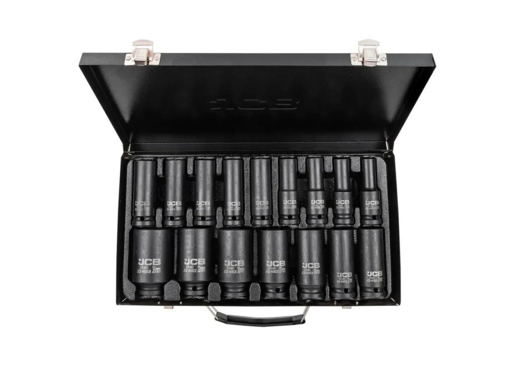 Sada 16 hlbokých rázových hlavíc JCB Tools JCB-4167-5MPB je profesionálny nástroj určený na intenzívne dielenské práce, vrátane montáže a demontáže skrutiek a matíc pomocou rázových kľúčov.