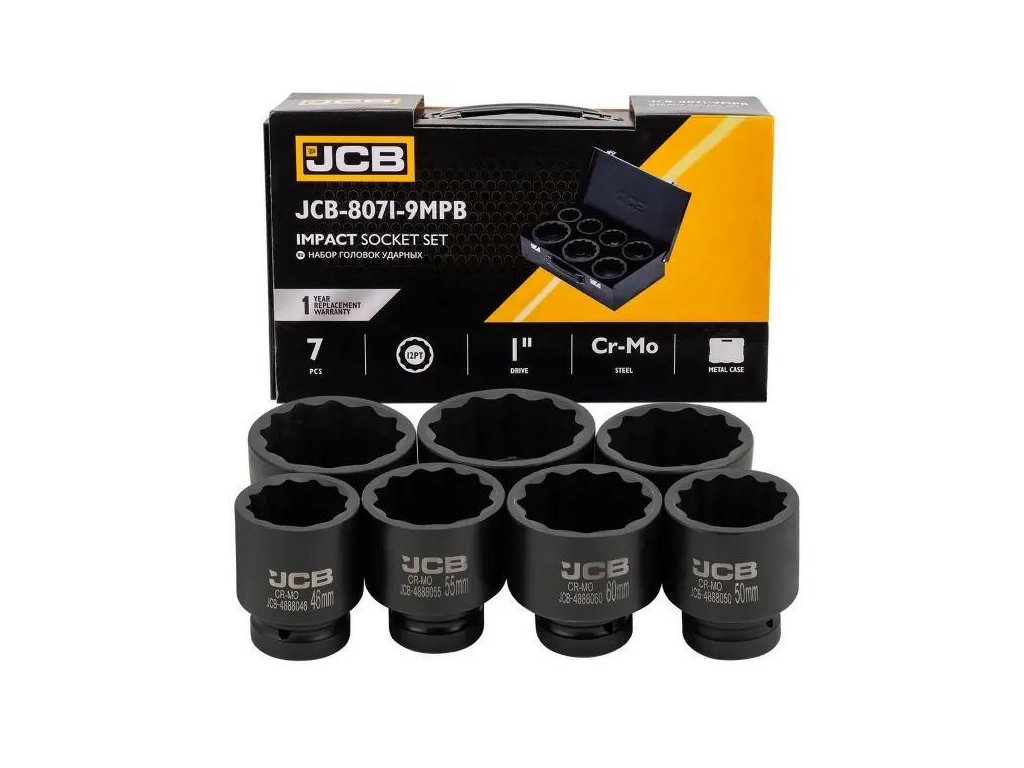 JCB Sada nárazových hlavíc 1" Cr-Mo 12-hranných 7 dielov 46-75 mm