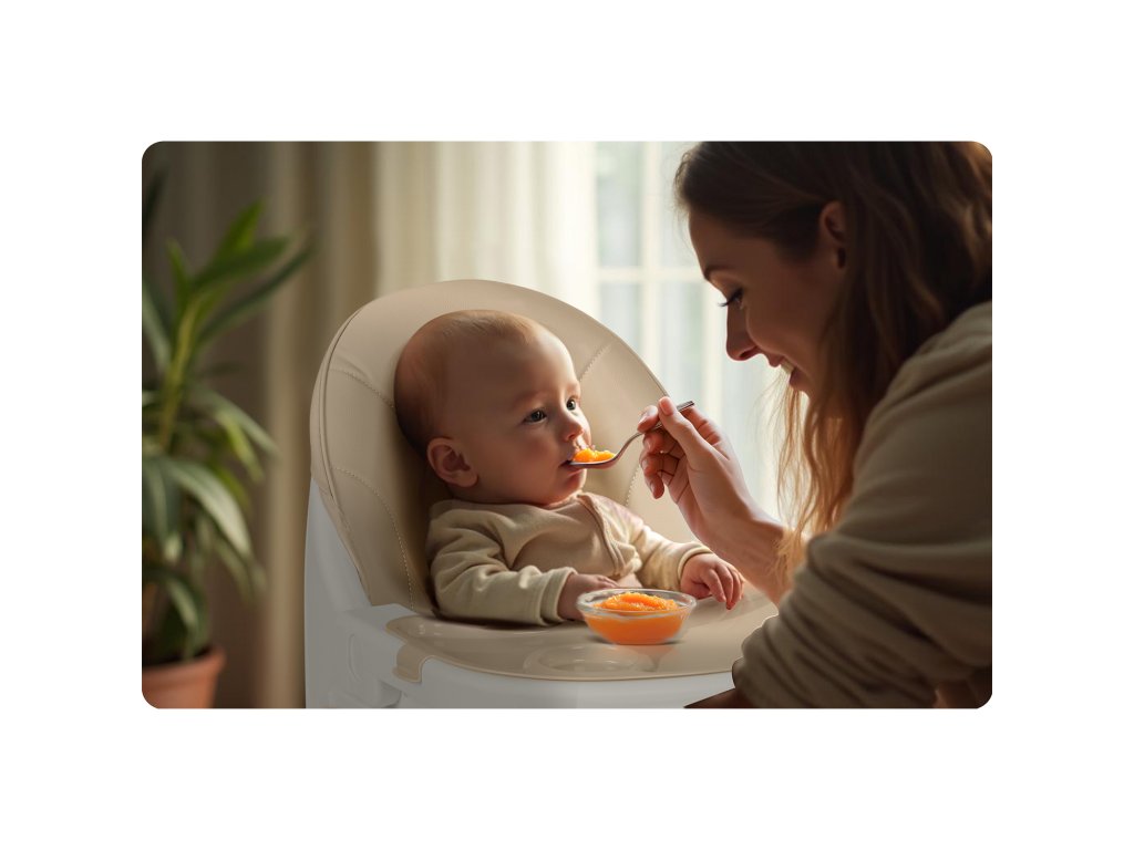 Podpora správneho držania tela: starostlivo navrhnutá stolička pomáha udržať správny postoj počas jedenia aj hry.
