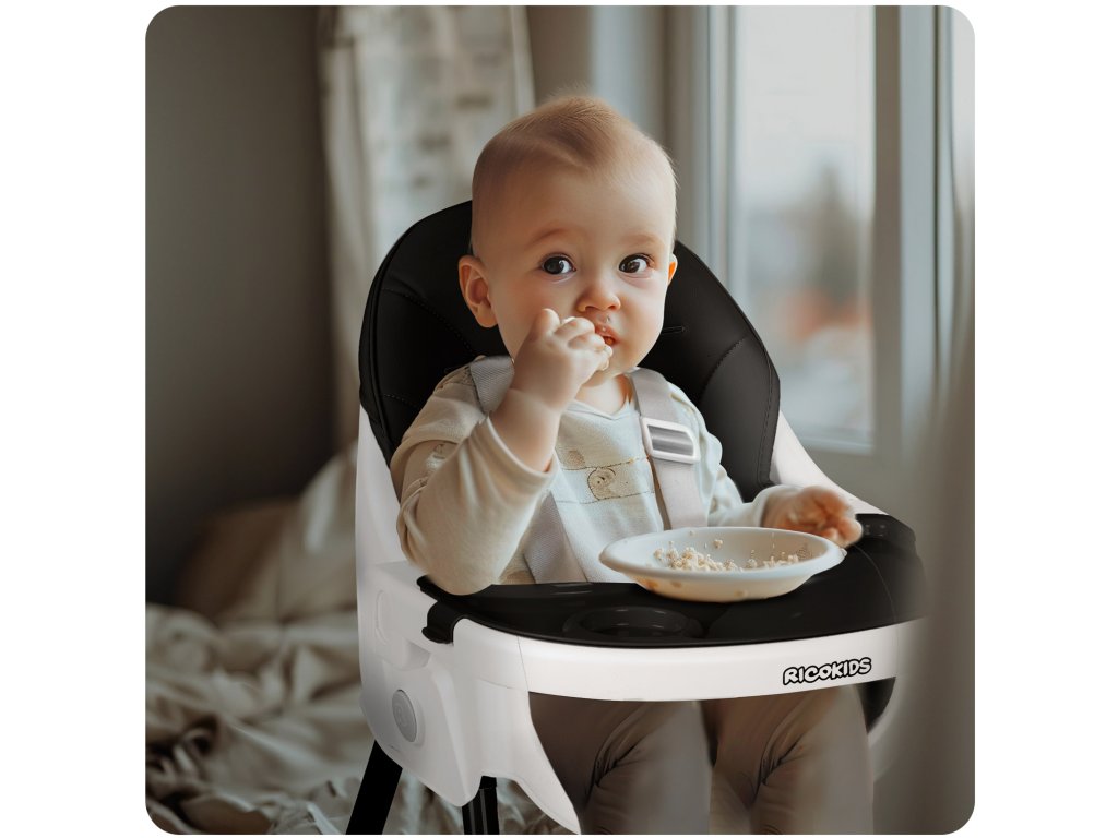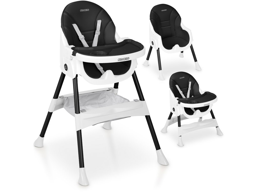 Stolička umožňuje voľnú reguláciu vzdialenosti tácky od dieťaťa. Možno ju tiež kedykoľvek úplne zdemontovať.