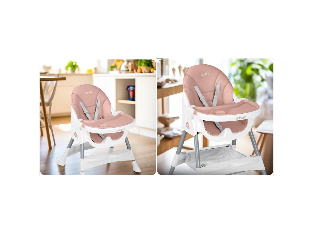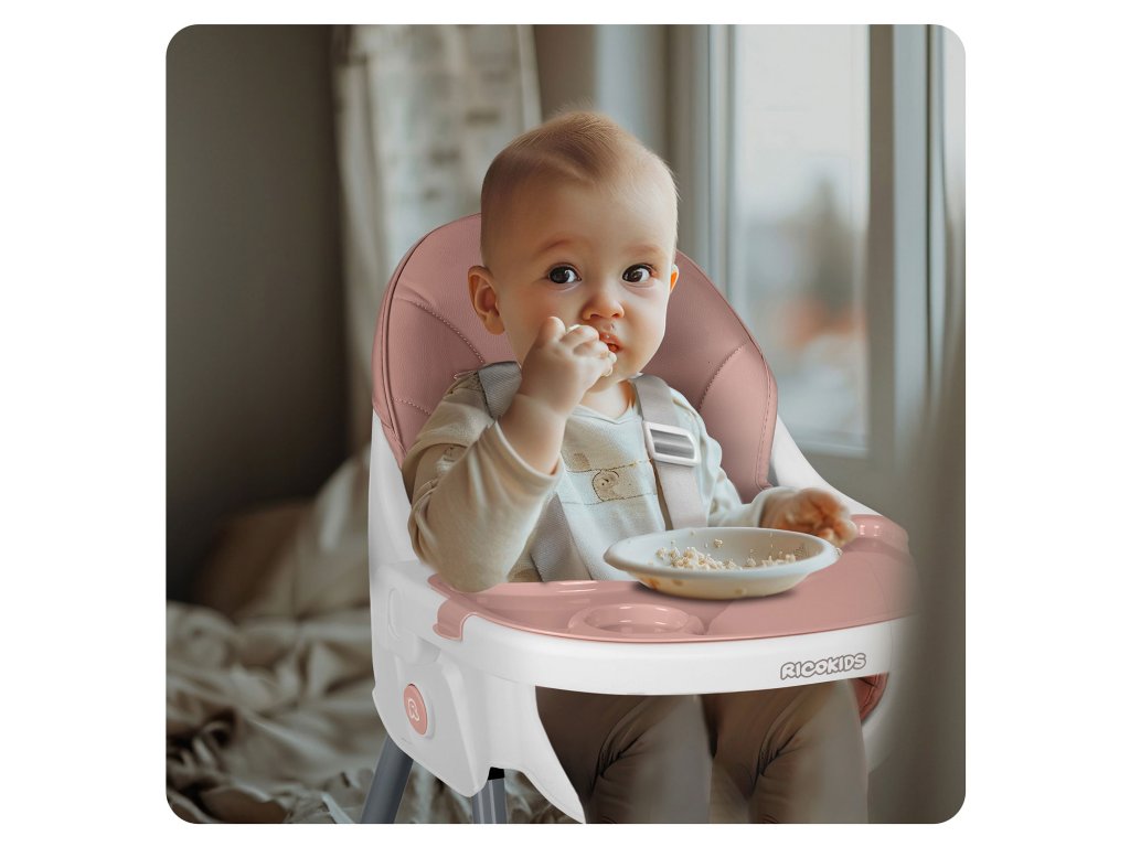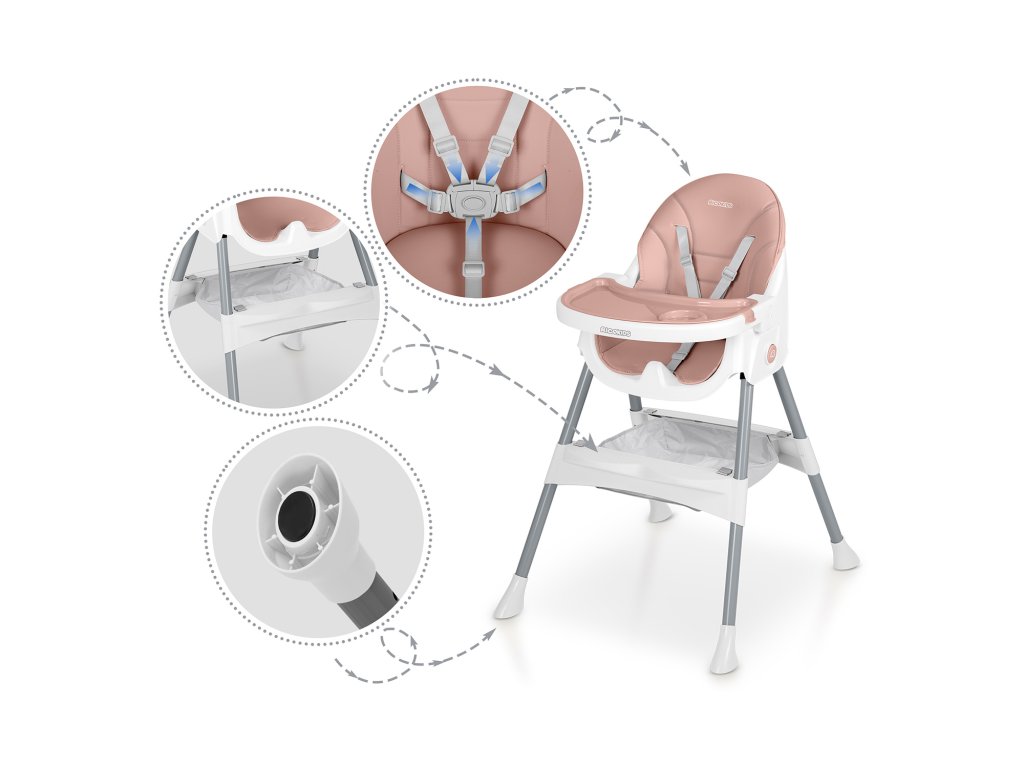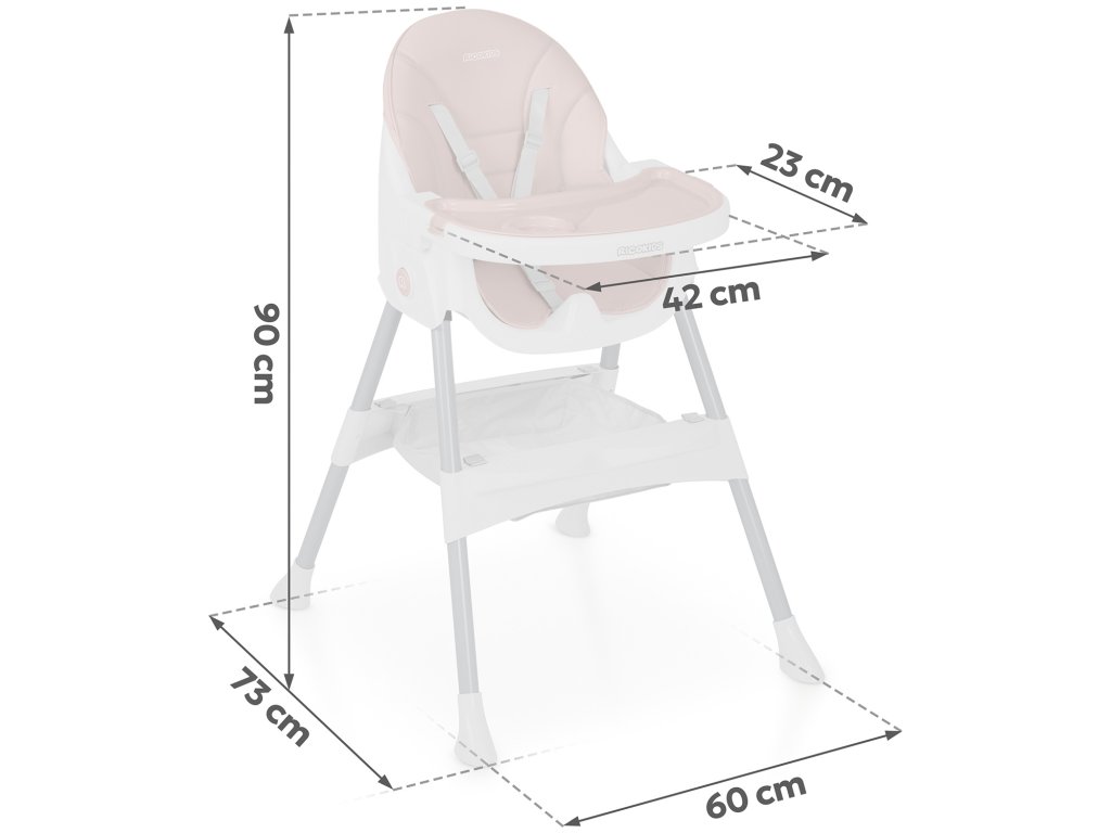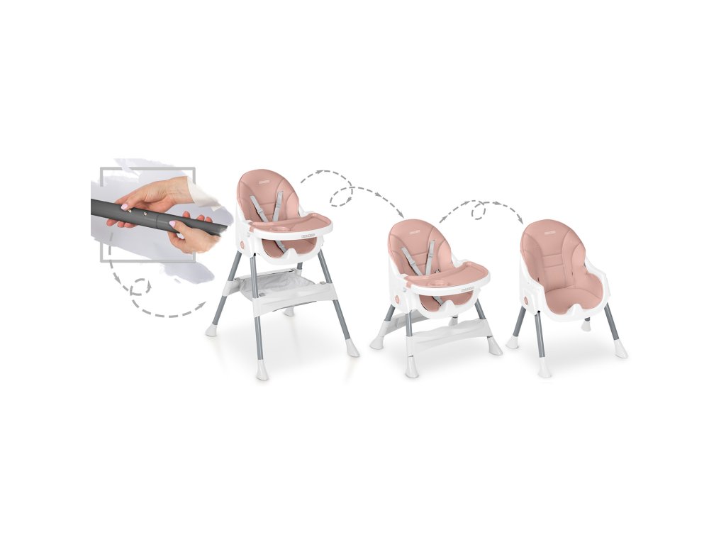 Stolička umožňuje voľné nastavenie vzdialenosti tácky od dieťaťa. Môže byť tiež kedykoľvek úplne demontovaná.