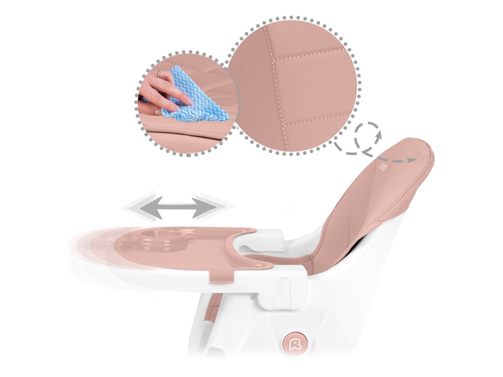 Odnímateľný povrch na tácku značne uľahčuje udržiavanie čistoty. Mäkký a komfortný poťahový materiál je vyrobený z materiálu, ktorý neabsorbuje nečistoty.