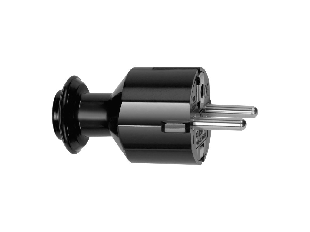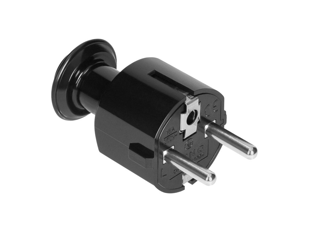 Zástrčka je vyrobená z vysoko kvalitného plastu (PC). Vhodná pre menovité napätie 230V a menovitý prúd 16A. Na použitie v suchých oblastiach (IP20). Čierna farba.