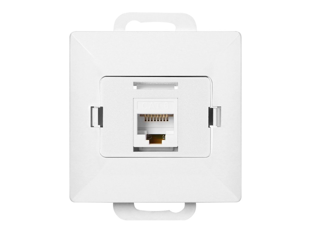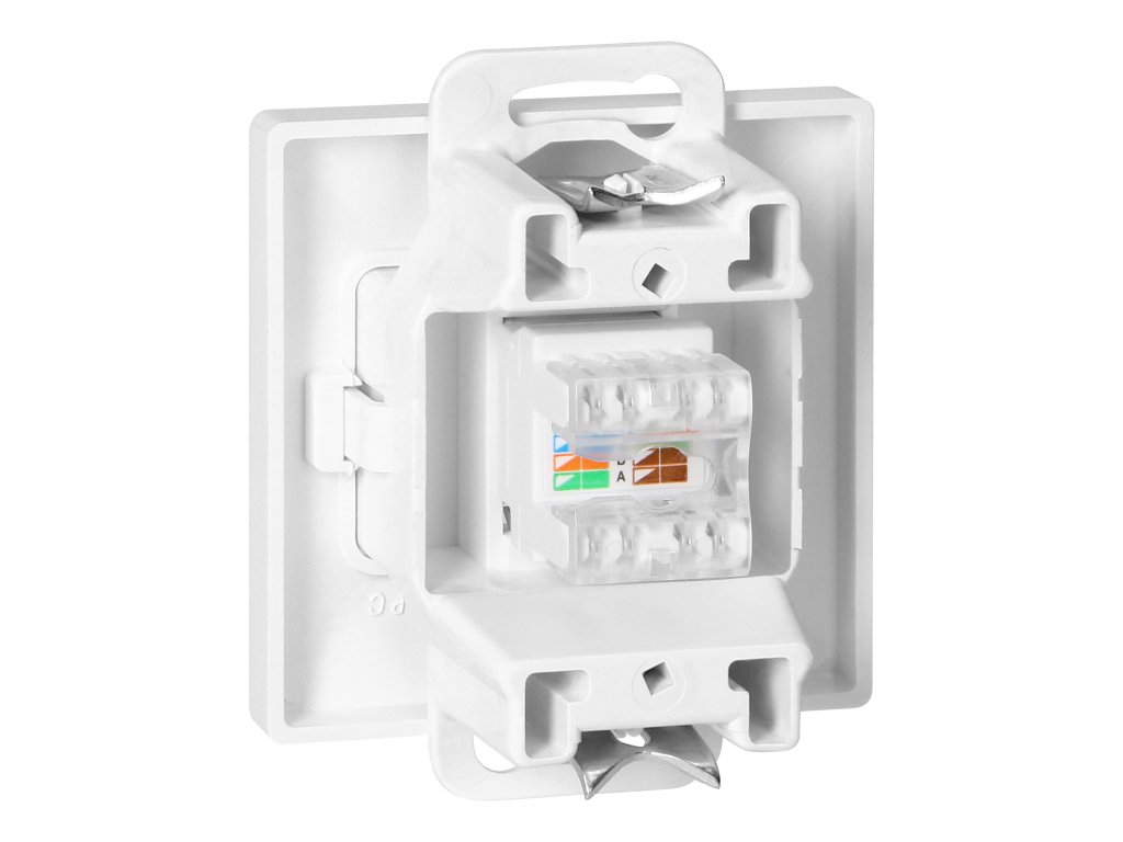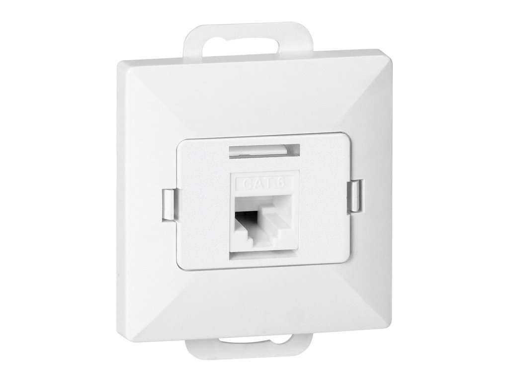 Modulárna séria so symetrickým systémom rámových dosiek (pre 1-, 2-, 3-, 4-, 5-modulov) umožňuje montáž produktu v horizontálnej i vertikálnej polohe. Moderný mechanizmus rýchleho pripojenia (drôty sa pripájajú priamo zatlačením do tela) zaručuje bezpečnú a spoľahlivú inštaláciu a odstránenie drôtov. Zásuvky sú vybavené tradičnými skrutkovými spojmi. Vnútorná konštrukcia svoriek zaručuje bezpečné pripojenie drôtov od 0,75 mm? do 2,5 mm?. Silná a robustná mriežka montážnej dosky a vysokokvalitné samoosné prvky umožňujú stabilnú a bezpečnú inštaláciu v krabici. Špeciálne pružné prvky uľahčujú osadenie rámu do tela.Jednoduchá RJ45 počítačová zásuvka, neekranovaná Cat5. Prispôsobená na montáž do steny. Mala by sa používať vo vnútri (IP20).