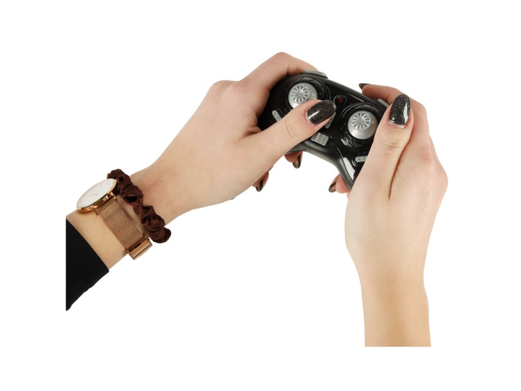 Dron sa ovláda pomocou 4-kanálového vysielača s frekvenciou 2,4 GHz.