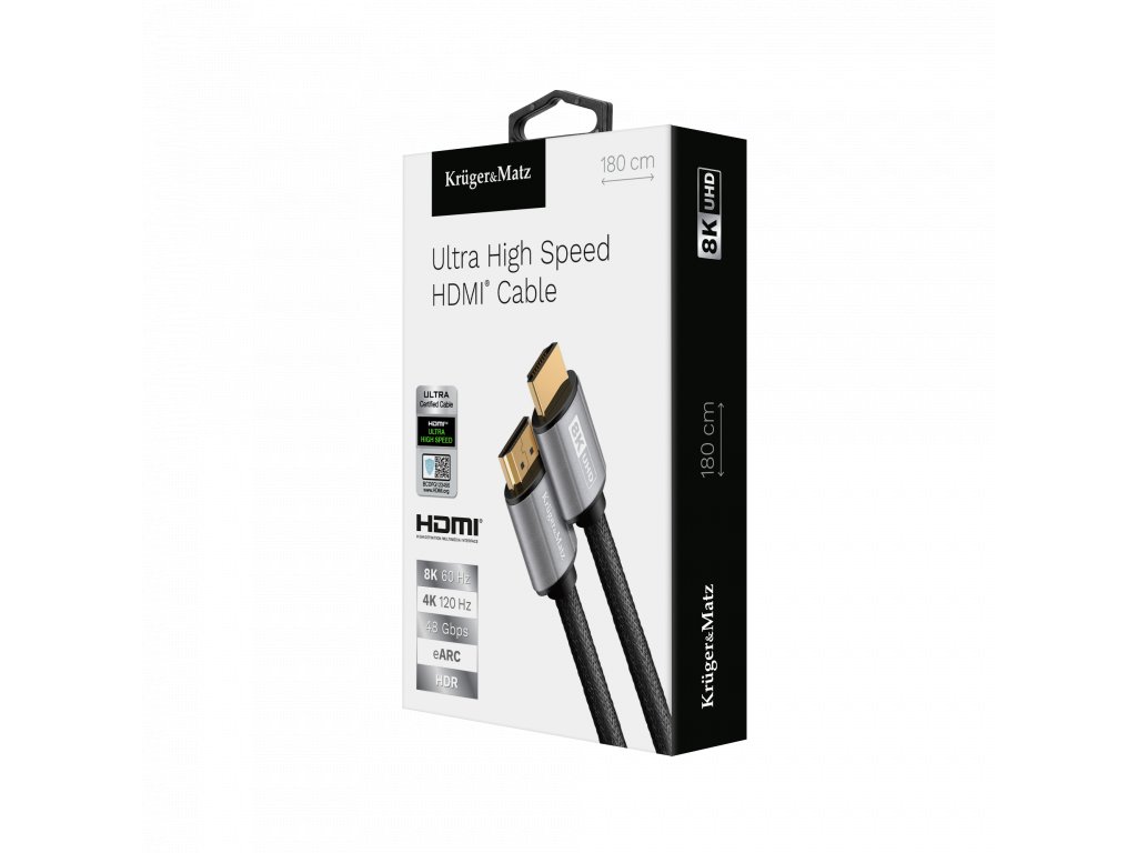 Ak potrebujete vysokokvalitný kábel HDMI, určite by ste mali vyskúšať modely Kruger&Matz! Vďaka použitiu hlavných vodičov z medi OFC si môžete byť istí, že digitálny prenos dát bude prebiehať bez akejkoľvek kompresie a straty kvality zvuku alebo obrazu. Kábel je vybavený dvoma konektormi HDMI, ktoré vám okrem iného umožnia pripojiť k televízoru digitálny TV set-top box alebo konzolu. Dôležité je, že kábel je certifikovaný a po naskenovaní kódu QR nájdete najdôležitejšie informácie o výrobku a jeho výrobcovi.