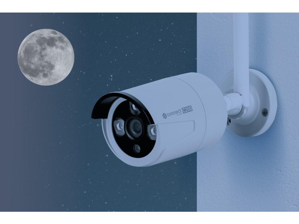 Connect C200 je vysokokvalitný bezdrôtový kamerový set s DVR, ktorý je ideálny ako monitorovací systém pre vašu domácnosť alebo firmu. Môžete používať 4 kamery s uhlom záberu 75,7° a dosahom až 300 metrov. Dôležité je, že ich utesnené puzdro je odolné voči poveternostným podmienkam. Ich správnu funkciu neovplyvnia ani extrémne horúčavy, ani silný dážď, ani mráz, takže vás budú chrániť po celý rok.