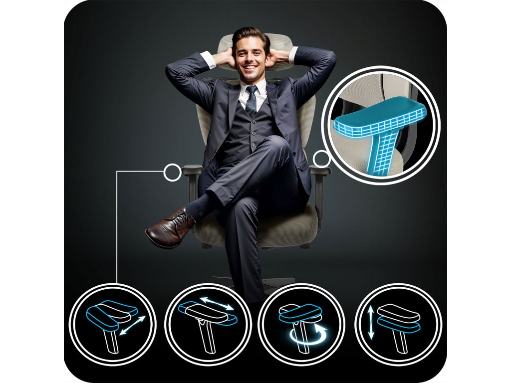 - Otáčanie: voľnosť pohybu – podrúčky sa otáčajú, prispôsobujúc sa vašej prirodzenej polohe.
