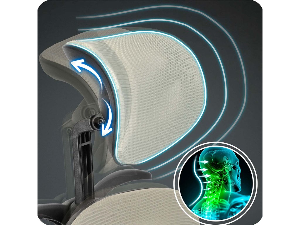 Nastaviteľná opierka hlavy v stoličke Talin™ umožňuje presne prispôsobiť výšku a uhol vašej výške. Týmto spôsobom podstatne uvoľníte svaly krku a šije, čím eliminujete napätie počas dlhých hodín práce. Komfortný, ergonomický tvar predchádza strnulosti, minimalizuje riziko bolesti a zlepšuje krvný obeh v oblasti hlavy.