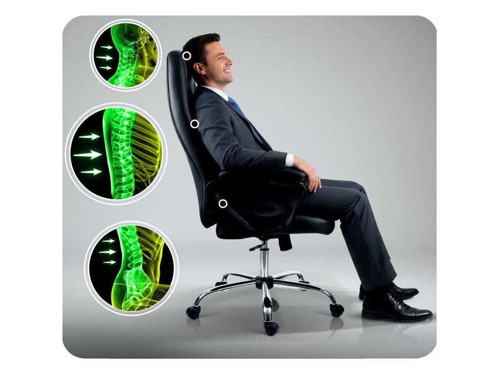 Šité na mieru pohodlný profil minimalizuje svalové napätie, znižuje riziko bolesti a zlepšuje koncentráciu pri kancelárskej práci.