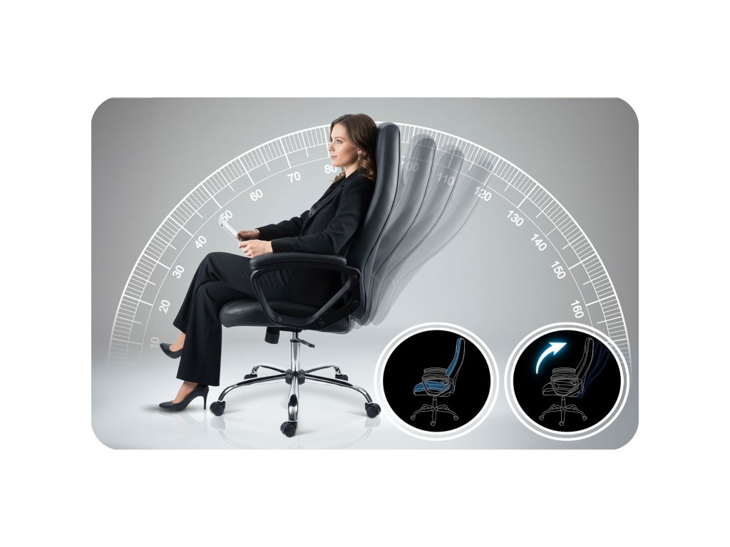 Kreslo ponúka široký rozsah naklonenia operadla, vďaka čomu môžete kedykoľvek prejsť z pracovnej pozície do pohodlného odpočinku.
