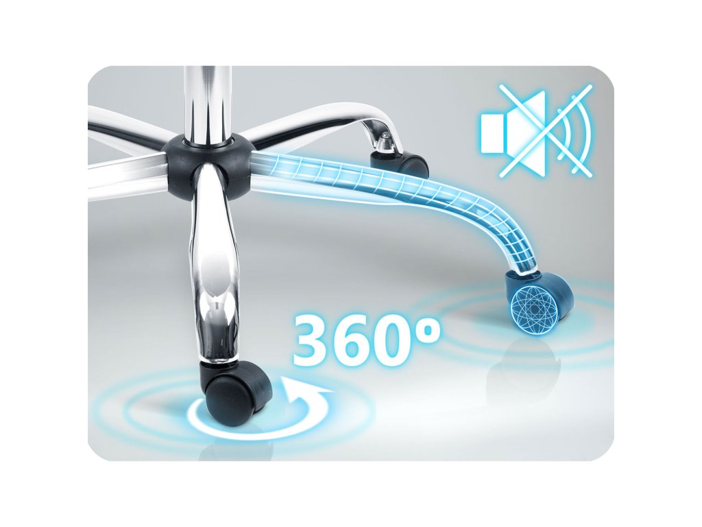 Tiché, povlakované kolieska 360° umožňujú plynulý pohyb bez hluku a bez poškriabania podlahy.