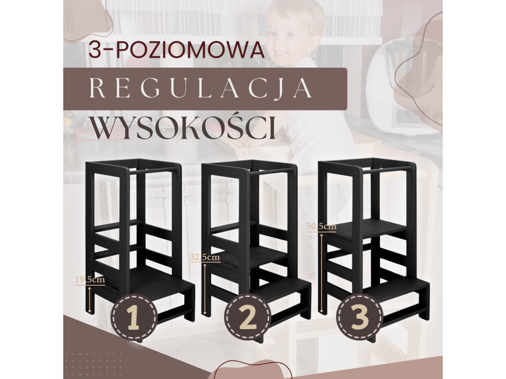 - Platforma nastaviteľná na troch výškach: 19,5 cm, 32,5 cm a 50,5 cm
