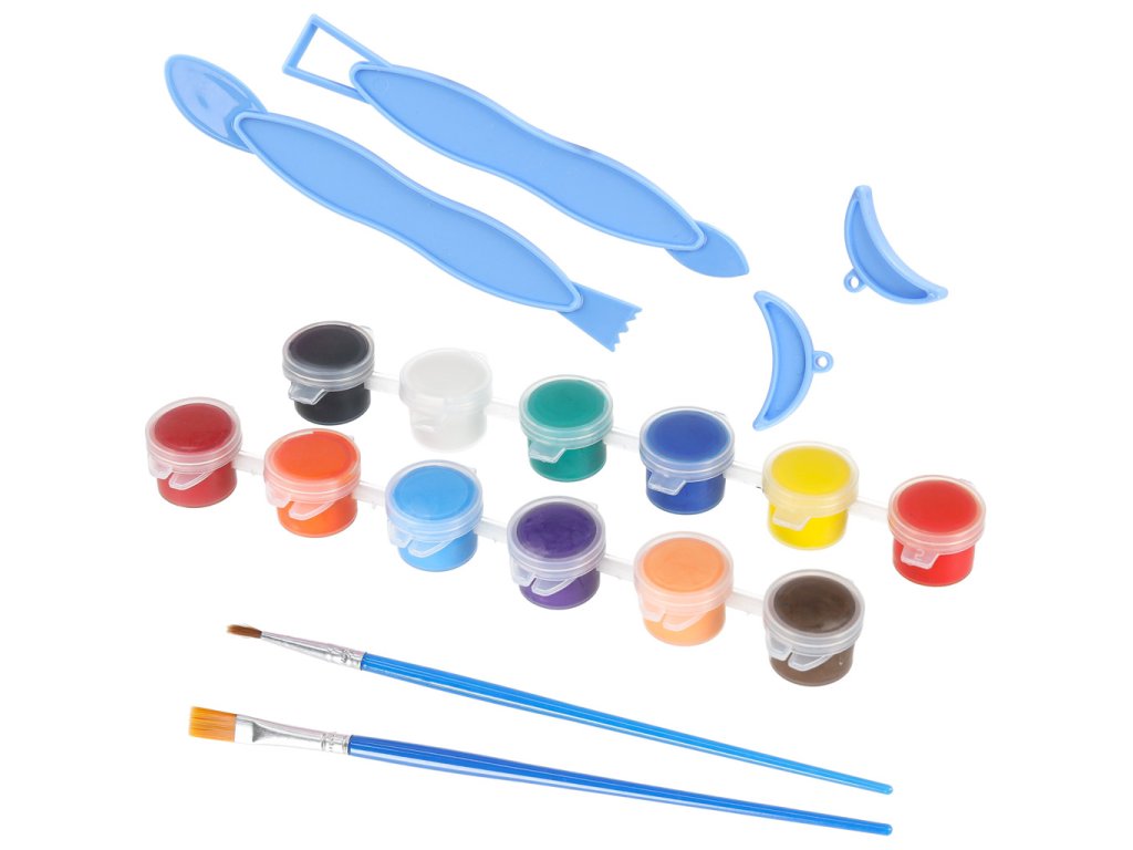 Vaše dieťa bude môcť nielen vytvárať krásne nádoby, ale ich aj fantasticky zdobiť vďaka priloženým štetcom a farbám až v 12 rôznych farbách!