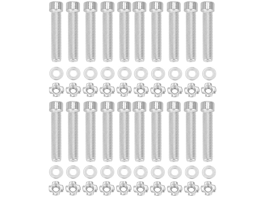 - montážne prvky: 20x skrutky / 21x pazúrikové matice / 21x podložky / 1x imbusový kľúč