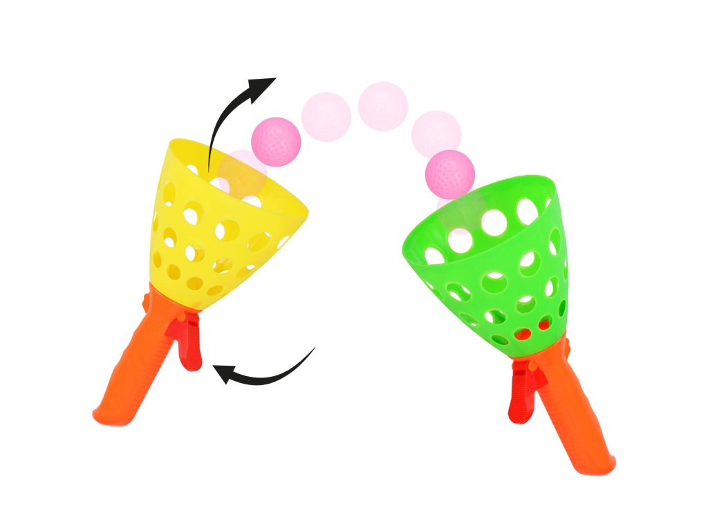 - Prvky v sade: 2x košíček, 2x vystreľovač, 3x loptička (držadlo s vystreľovačom je potrebné samostatne zostaviť s košíčkom)