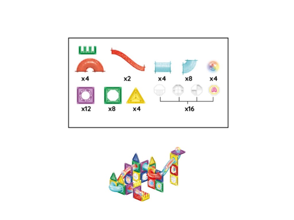 Súprava obsahuje celkom 66 prvkov, vrátane: