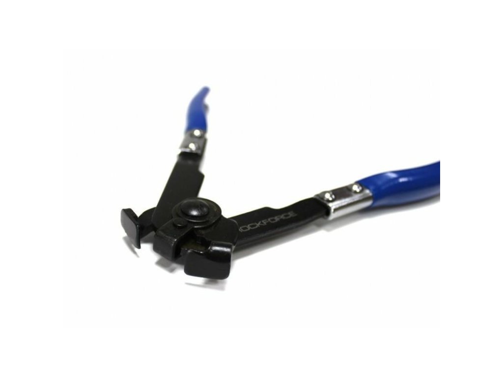 Kliešte určené na samosvorné spony s plochým prierezom používané v chladiacich okruhoch.Majú okrúhle, vrúbkované, otočné konce čeľustí a mechanizmus, ktorý ich automaticky blokuje v uzavretej polohe.
