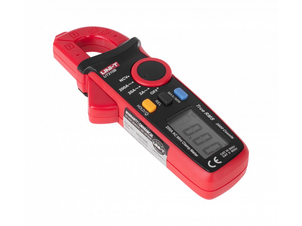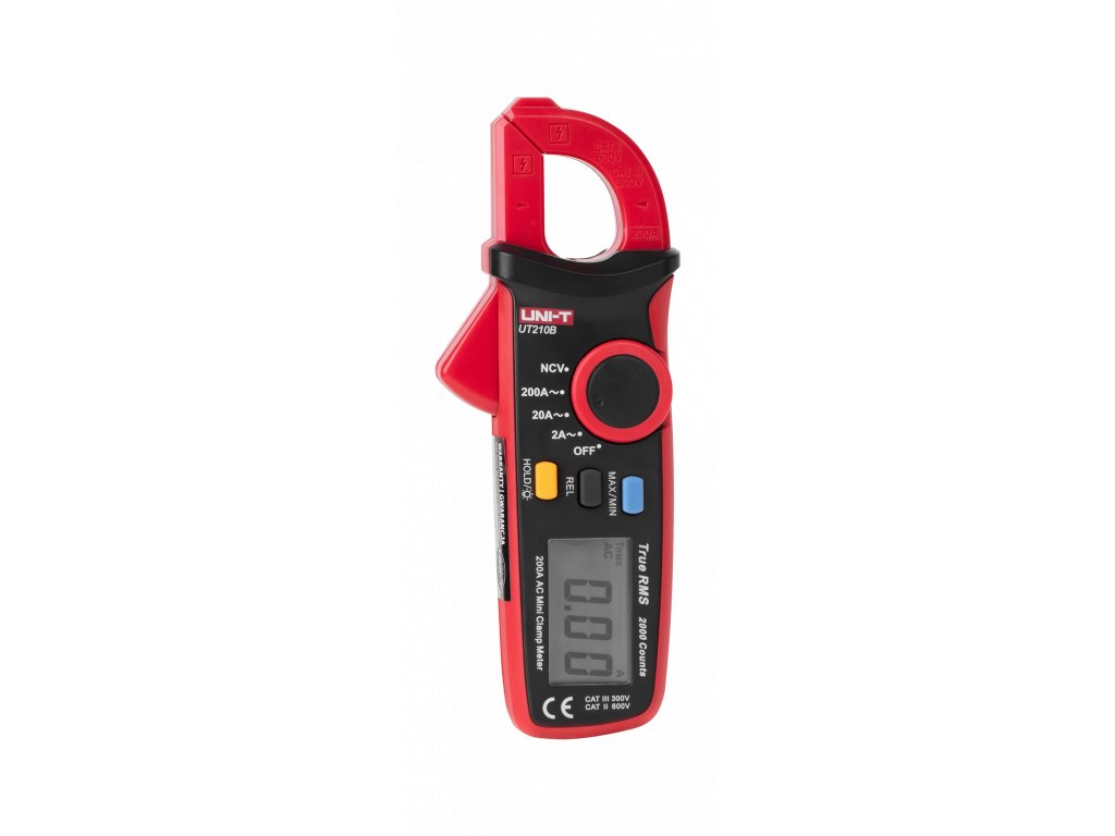 Vreckový merací prístroj UT210B s funkciou TRUE RMS umožňuje rýchle a pohodlné meranie záťaže AC 2A/20A/200A. Prístroj je ľahký a veľmi ľahko sa používa, takže bude užitočný nielen pre elektrikárov, ale aj pre elektrotechnikov, ktorí denne vykonávajú časté a rýchle elektrické testy. Aby sa predišlo chybám merania, zariadenie má funkciu indikácie slabej batérie. Okrem toho je merač vybavený možnosťou automatického vypnutia, aby sa zvýšila účinnosť batérie.