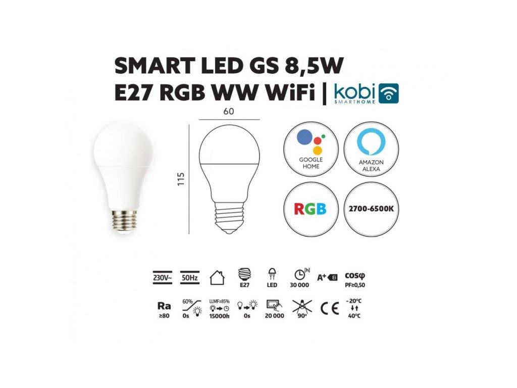 KOBI SMART LED ŽIAROVKA 8,5W E27 RGB WW WiFi KAGSE2785RWW