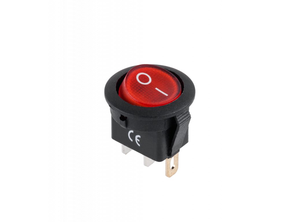 Kolískový vypínač PRK0020B mini,ON-OFF,3-pin, DC-12V,červeny,podsvietený