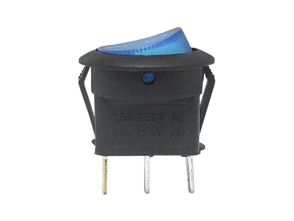 Kolískový vypínač PRK0002E ON-OFF, okrúhly, 3-pin, AC-240V, žltý, podsvietený