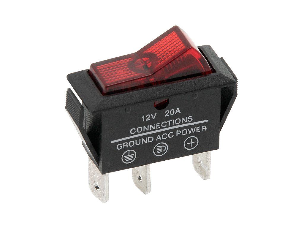PRK0016B Páčkový prepínač červený, 3-pin, ON-OFF, 20A/12V DC, podsvietený