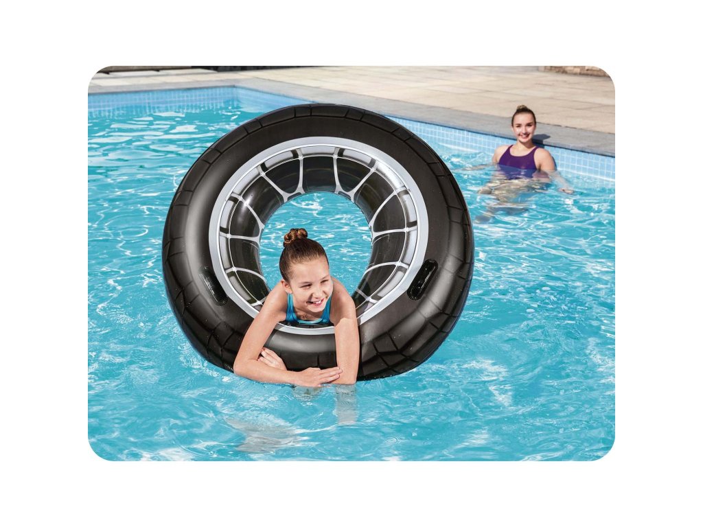 Veľké plavecké koleso Bestway, ktoré vzhľadom pripomína automobilovú pneumatiku, iste osloví všetkých plážovníkov.