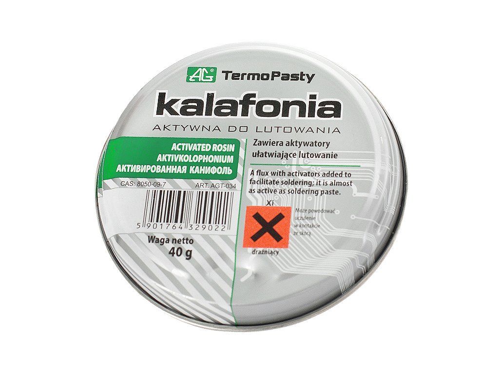 Kolofónia 1492- AG je aktívna kolofónia určená na jednoduchšie a spoľahlivejšie spájkovanie. Vďaka pridaným aktivátorom podporuje roztekavosť spájky, pomáha odstrániť oxidáciu z povrchu a zlepšuje kvalitu spoja. Je vhodná tam, kde je potrebné dosiahnuť čistý, pevný a rovnomerný spájkovaný spoj.