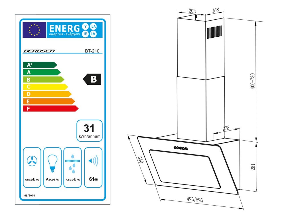 Komínový digestor 60 cm BT-210 čierny