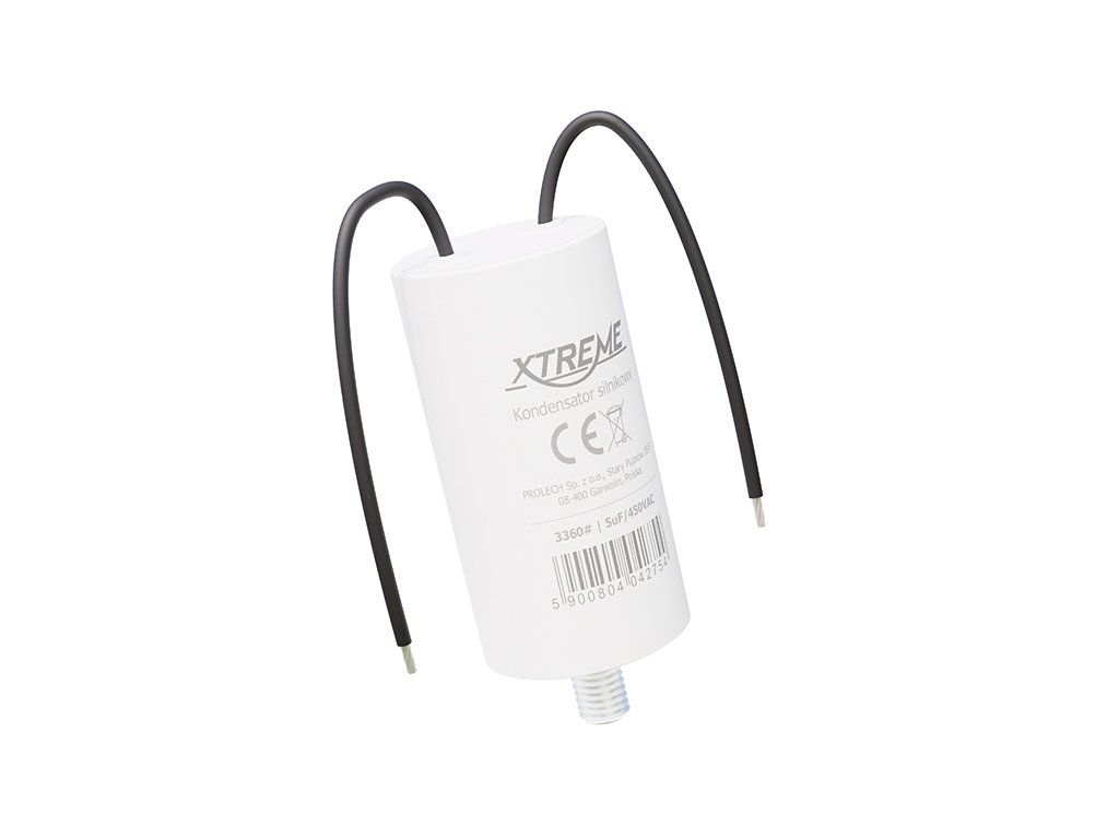 Rozbehový kondenzátor Kondenzátor 5uF 450V 3360- je určený pre striedavé jednofázové indukčné motory pracujúce na frekvencii 50/60 Hz. Využíva sa ako spoľahlivý štartovací alebo prevádzkový prvok v zariadeniach, kde je dôležitý plynulý rozbeh a stabilná prevádzka motora.