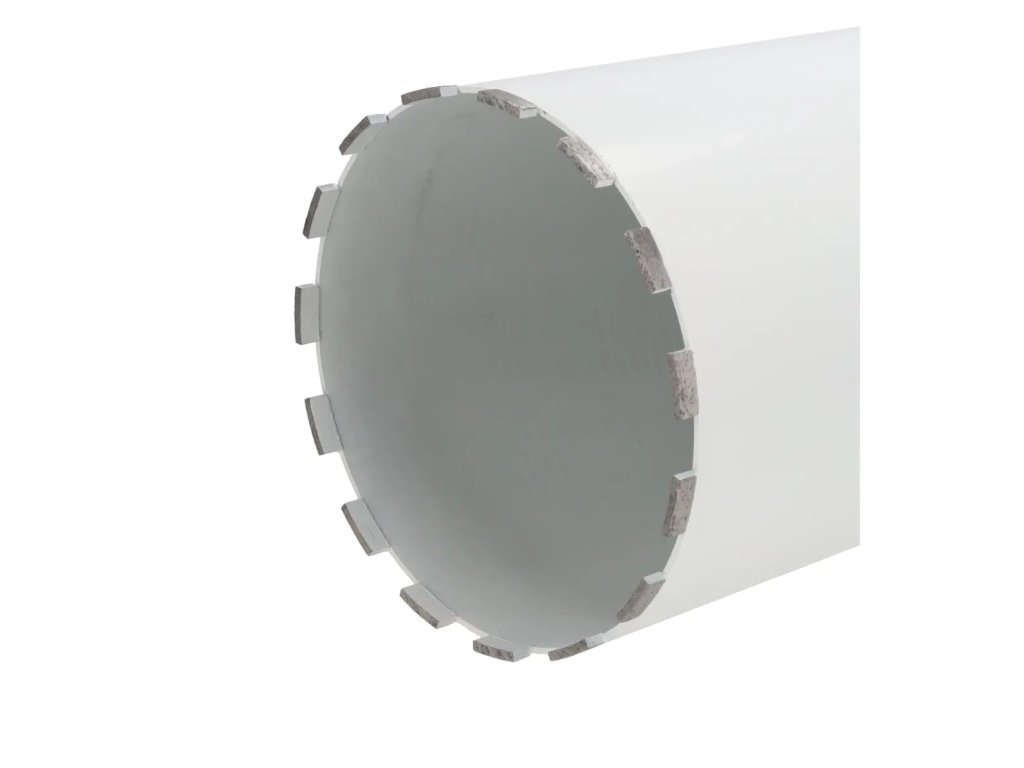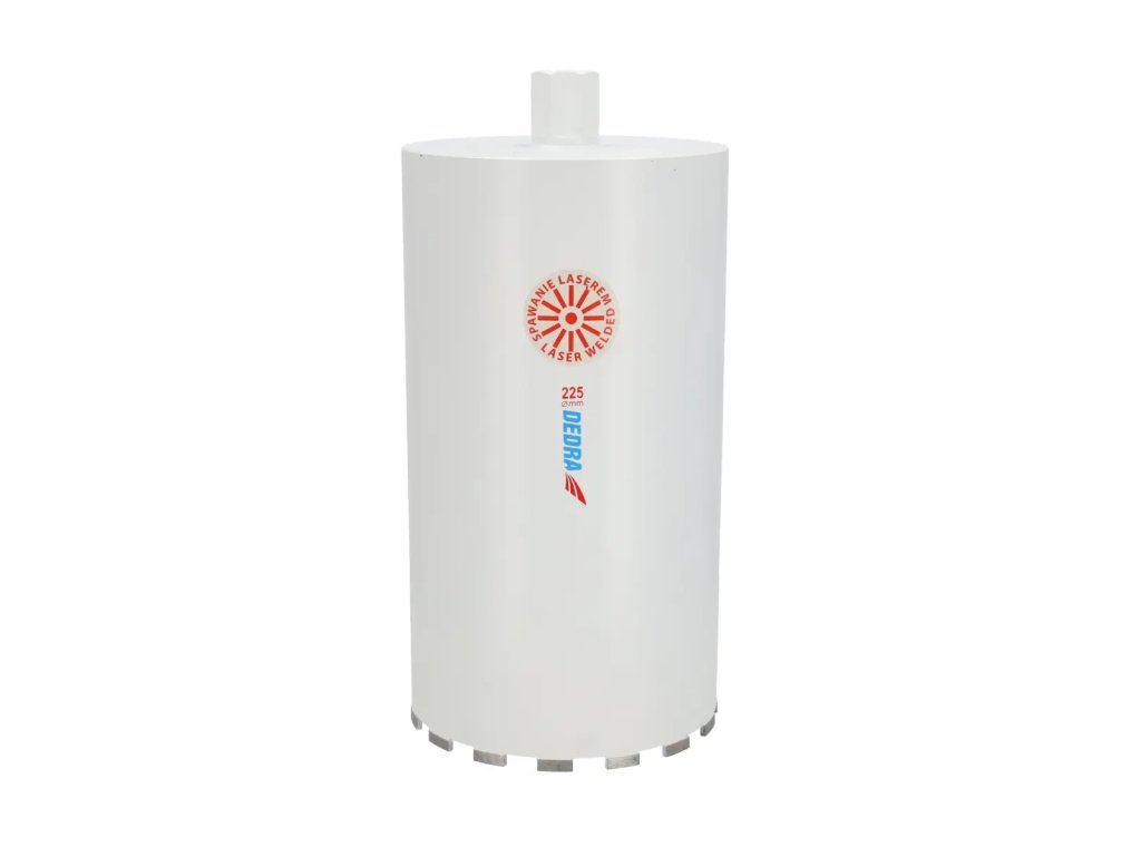 Veľkosť zobrazená nafotografii je príklad.Kľuka na vŕtanie s priemerom 225 mm a dĺžkou 400 mm. Je určený na vŕtanie do tvrdých materiálov, ako je betón, železobetón, murivo a tehly. Diamantové zubysú laserom spojené s telom korunky, čo zvyšuje životnosť korunky. Šesťhranná stopka na korunke uľahčuje jej zapínanie.