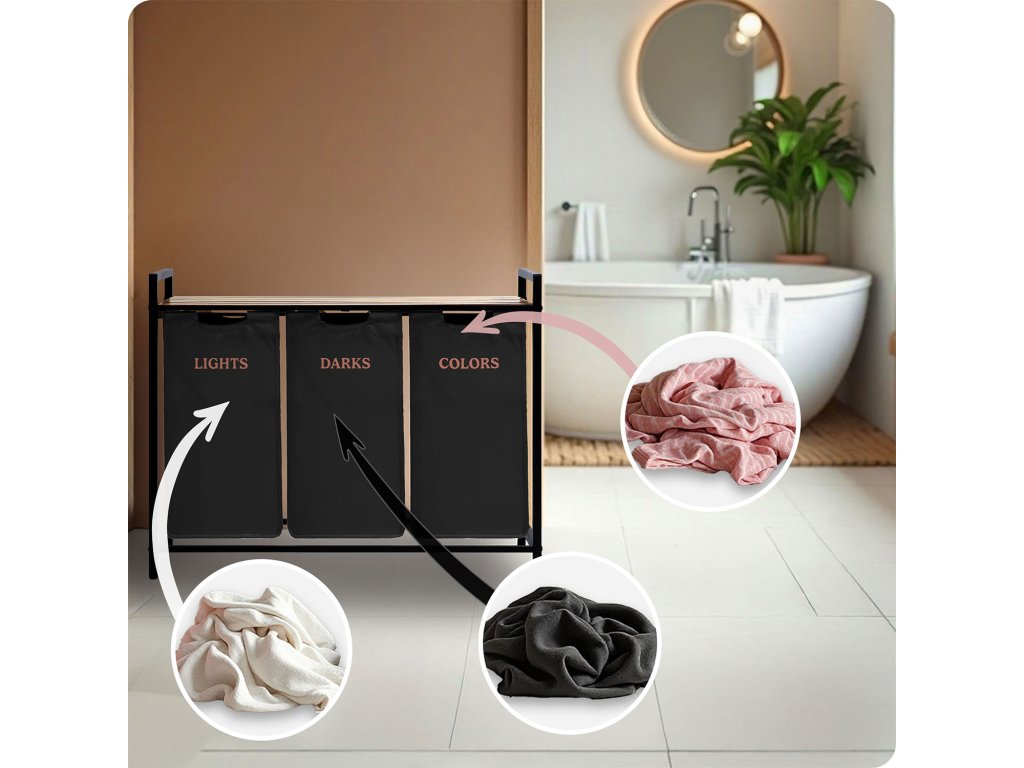 Kôš na bielizeň trojkomorový na stojane 120 l Massido