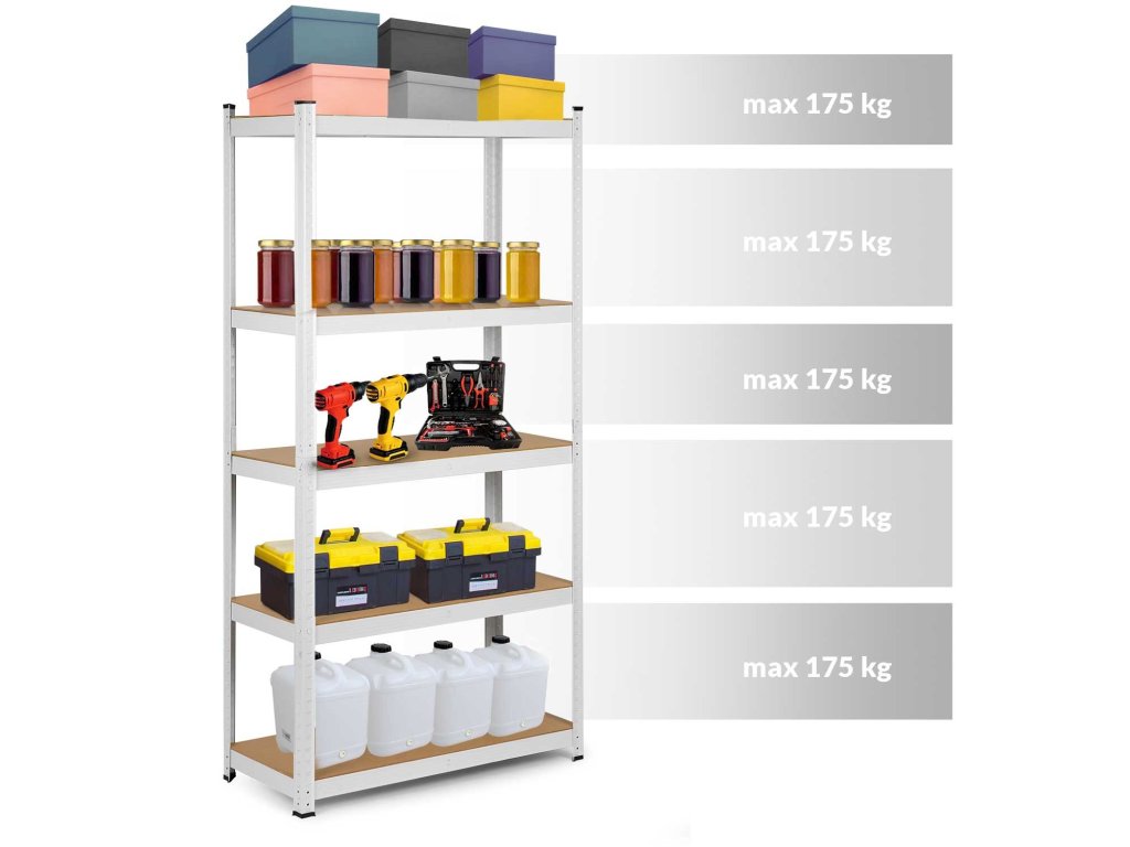 Regál pozostáva z 5 políc a má maximálnu nosnosť 875 kg!