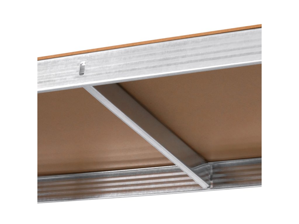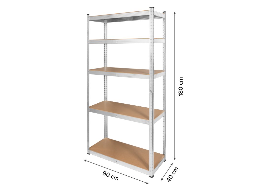 Dielenský regál zo série Rebel Tools má pevnú konštrukciu z pozinkovanej ocele a je vhodný na skladovanie ľahkých aj ťažkých predmetov. Je vybavený 5 silnými nosníkmi, z ktorých každý vydrží zaťaženie 150 kg. Aby ste minimalizovali riziko zlyhania políc, rozložte váhu rovnomerne na police.