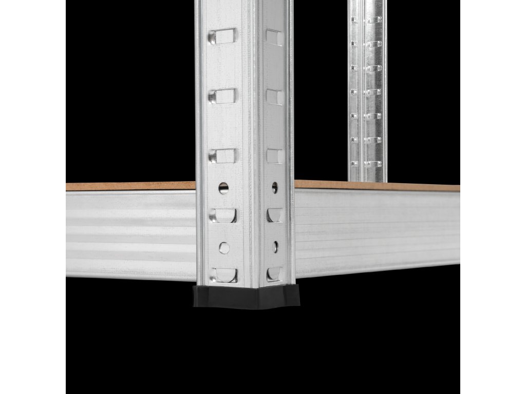 Regál je vybavený 5 nastaviteľnými policami, čo vám umožňuje ľubovoľne konfigurovať priestor vo vašej dielni alebo sklade podľa vašich potrieb. Môžete tiež upraviť vzdialenosť medzi policami tak, aby vyhovovali rôznym veľkostiam predmetov.