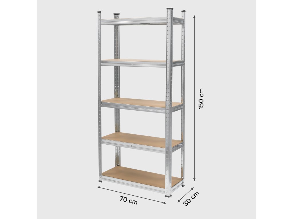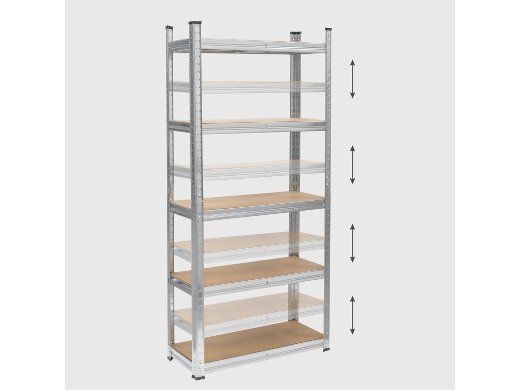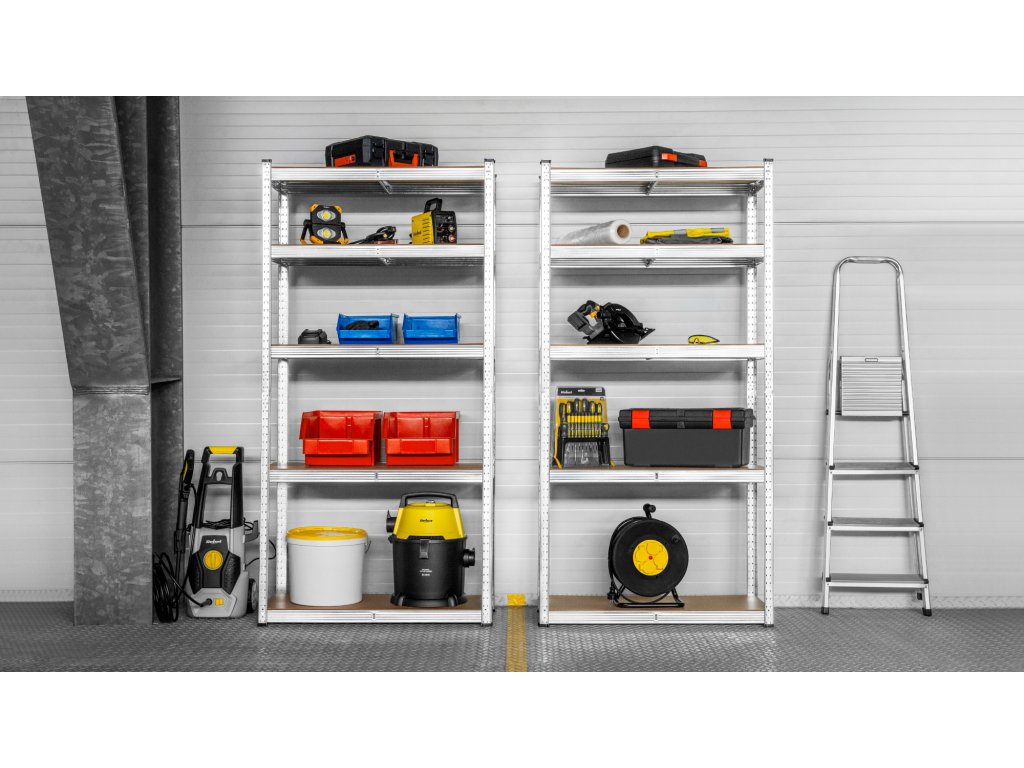 Regál je vybavený 5 nastaviteľnými policami, čo vám podľa potreby umožňuje akúkoľvek konfiguráciu priestoru v dielni či sklade. Môžete tiež prispôsobiť vzdialenosť medzi policami, aby ste mohli uložiť rôzne veľkosti predmetov.